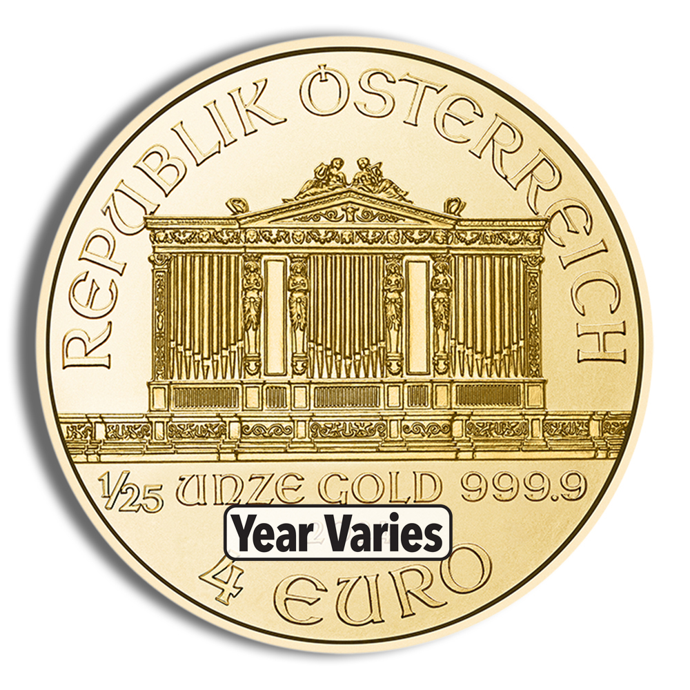Experience the beauty and precision of Austrian minting with the 1/25 oz Austrian Philharmonic Gold Coin, available at Atlas Bullion. These impressive coins are produced by the Austrian Mint and are composed of 1/25 troy ounce of .9999 fine gold. The obverse features the Great Organ of the Vienna Musikverein concert hall, while the reverse depicts an array of musical instruments, including a cello, violins, a harp, and a Vienna horn. As the world’s first bullion coin denominated in euros, the Austrian Philharmonic Gold Coin has gained global recognition for its purity, quality, and artistic design. The 1/25 oz size offers an affordable entry point for those seeking to add fractional gold to their portfolio.