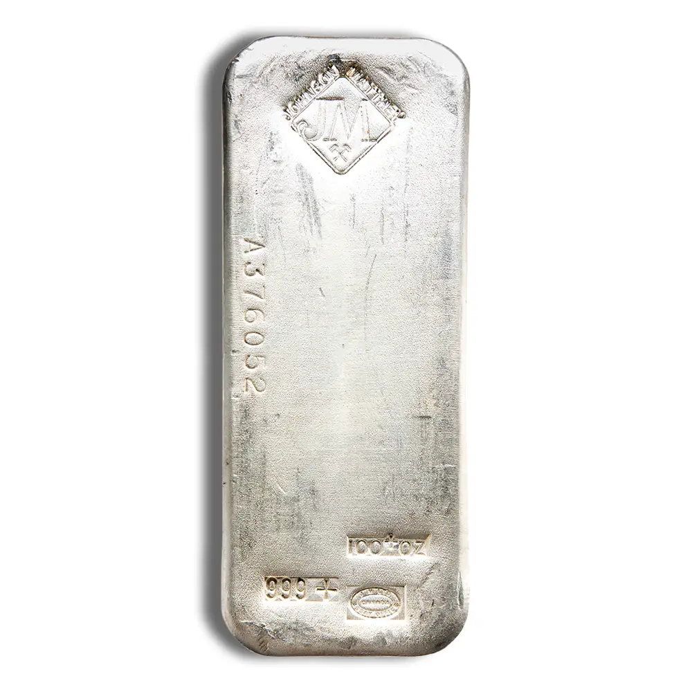Own a piece of British refining history with the prestigious 100 oz Silver Bar from the iconic Johnson Matthey brand, now available through Atlas Bullion. Each substantial bar contains 100 troy ounces of .999 fine silver stamped with the classic JM logo and assayer hallmarks that have represented exceptional quality for over two centuries. Founded in 1817, Johnson Matthey built an enduring legacy as one of the world’s most respected names in precious metals production and refining, ensuring their silver bars remain coveted for their liquidity worldwide.