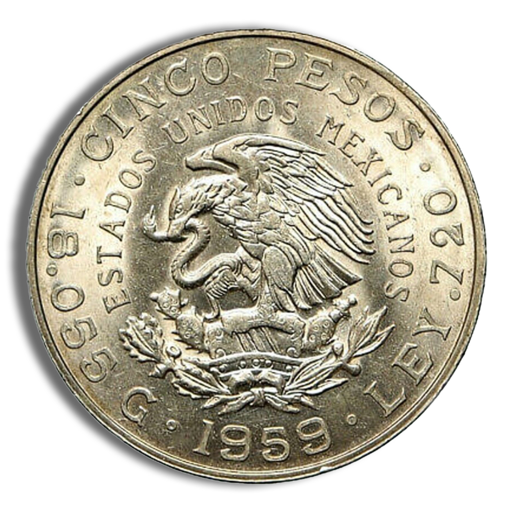 Expand your portfolio with this offering of the vintage 1959 Mexico 5 Pesos Carranza Silver Coin, now available circulated on average through Atlas Bullion’s marketplace. Each legal tender peso contains .6 troy ounces of .720 fine silver struck by the prestigious Mexican Mint featuring the portrait of famed revolutionary Venustiano Carranza gracing the obverse along with Mexico’s coat of arms centering the reverse. While exhibiting typical wear and markings consistent with circulation, these coins provide an affordable opportunity to own an older Mexican silver peso issue honoring one of the key figures of the revolution era.
