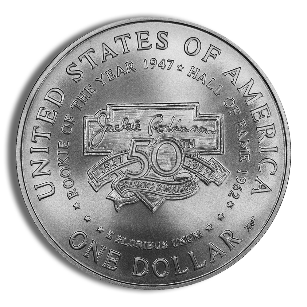Interesting fact: The 1997-S $1 Jackie Robinson Silver Commemorative coin was minted to celebrate the 50th anniversary of Jackie Robinson breaking the baseball color line in 1947.