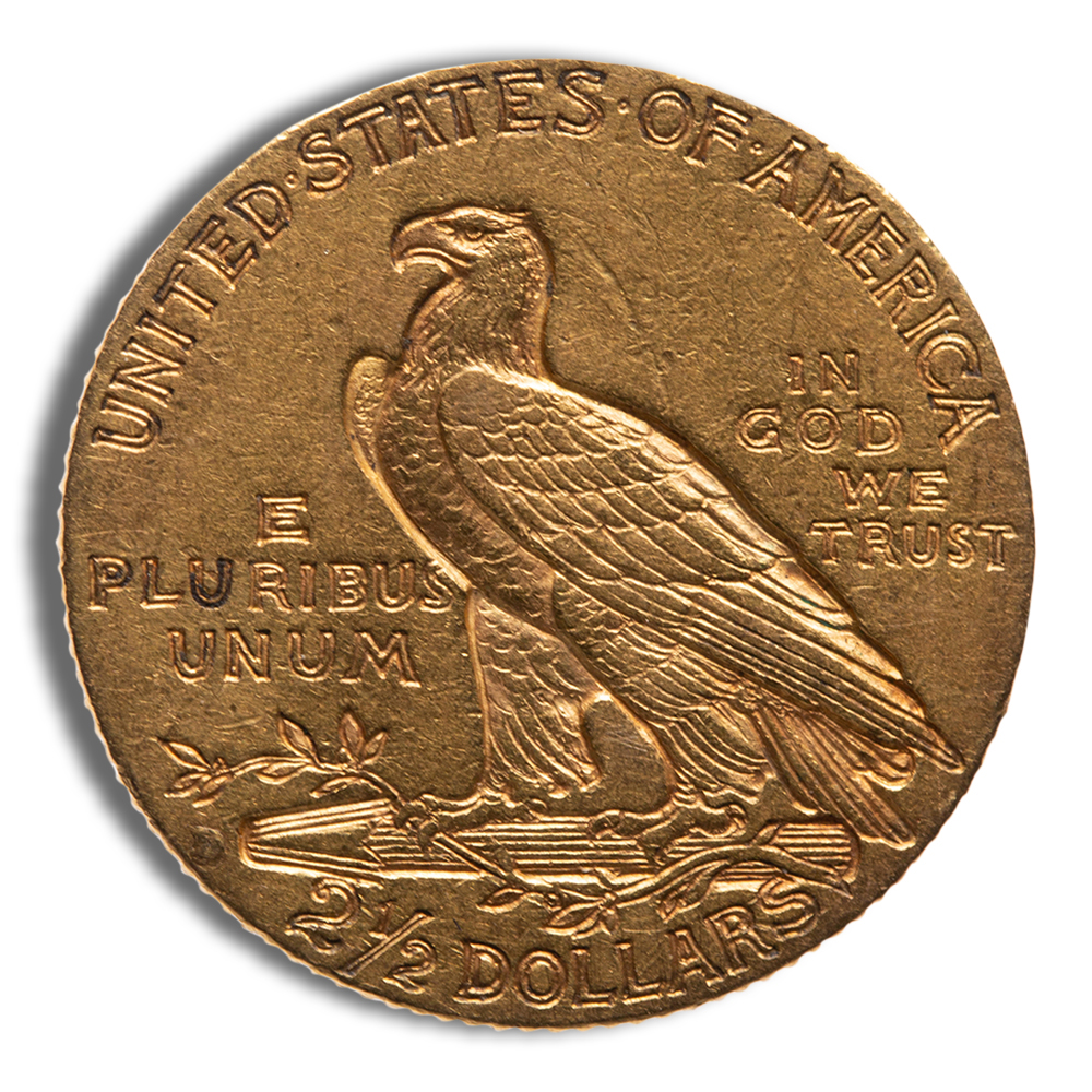 Elevate your collection with the $2.5 Gold Indian Quarter Eagle in Extremely Fine (XF) condition, available now at Atlas Bullion. This unique coin, designed by Bela Lyon Pratt, showcases a striking incuse design with a Native American chief on the obverse and a majestic eagle on the reverse. Minted from 1908 to 1929, the $2.5 Indian Quarter Eagle contains 0.121 troy ounces of pure gold.