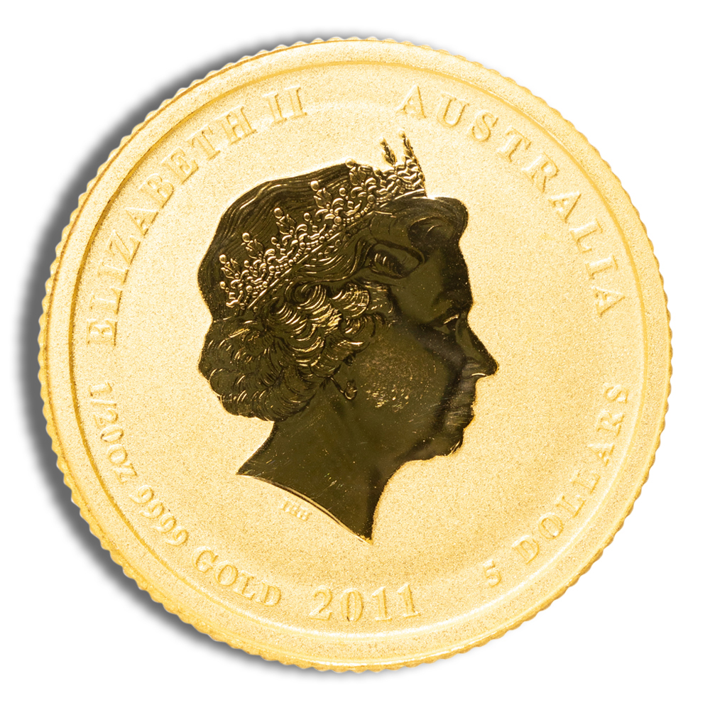 Enhance your collection with the 2011 1/20 oz Australia Gold Lunar Rabbit from the Lunar Series II. This exquisite coin, minted by the Perth Mint, celebrates the Year of the Rabbit and features a detailed design of a rabbit on the reverse, while the obverse showcases the effigy of Queen Elizabeth II. With its significant gold content and beautiful design, this coin is a valuable addition for collectors and investors alike.