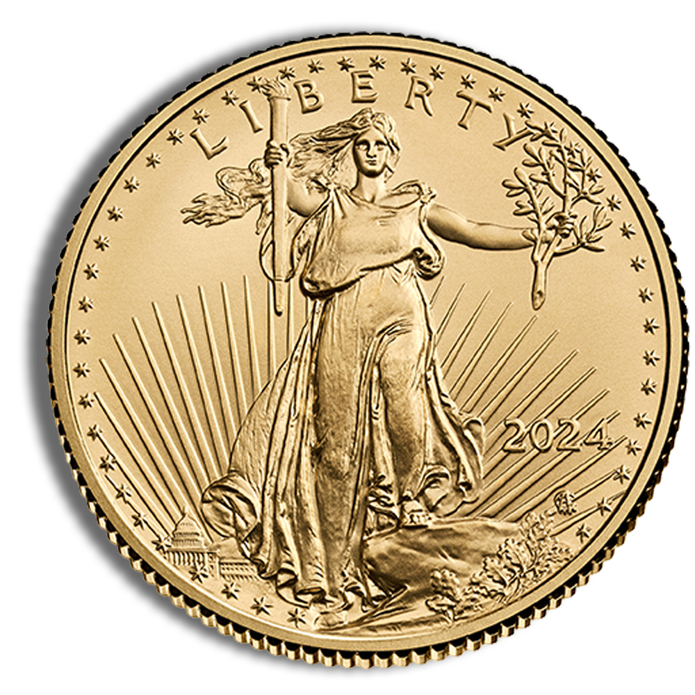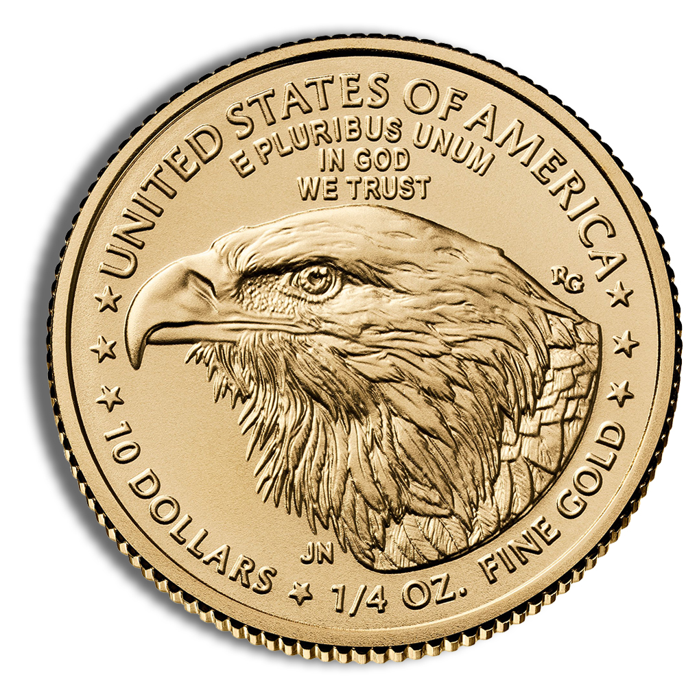 Unlike 24K gold coins (such as the Gold Maple Leaf), the Gold Eagle’s 22K alloy enhances scratch resistance and durability while still containing a full 1/4 oz of pure gold.