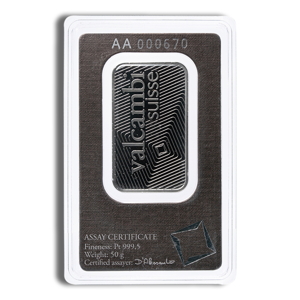 Q: Why invest in a 50 gram Valcambi Platinum Bar?