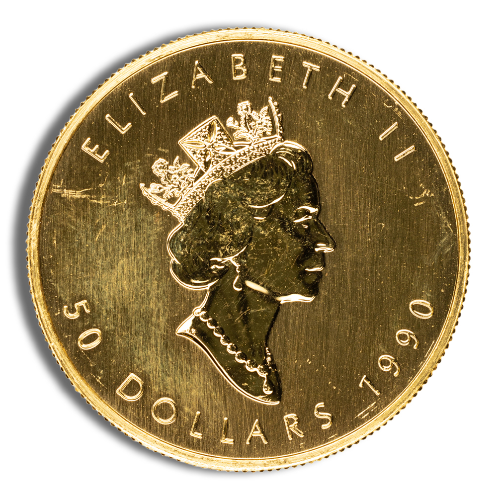 Expand your collection with the Impaired Gold Maple coin. These coins, despite having abrasions, spots, or other imperfections, still hold significant value due to their high gold content and iconic design. The Canadian Gold Maple Leaf features a portrait of Queen Elizabeth II on the obverse and a maple leaf on the reverse.